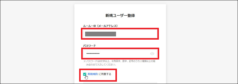 ・ムームーID、パスワードを入力し「利用規約に同意する」にチェックを入れる
