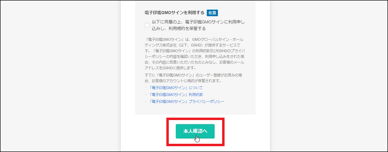 ・「本人確認へ」をクリック