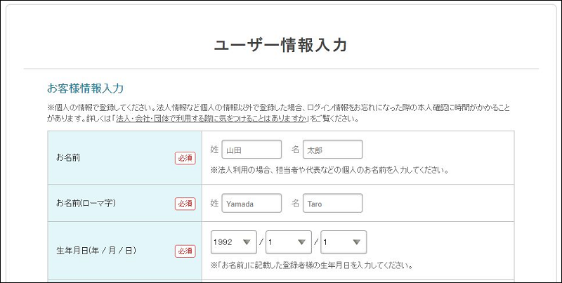 ・ユーザー情報入力