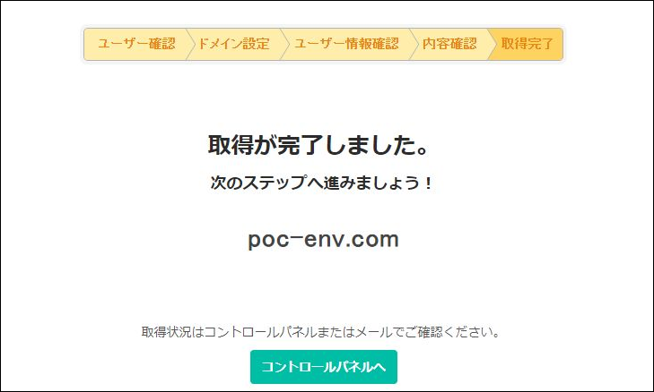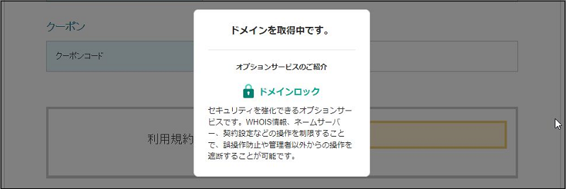 ドメイン取得画面が表示されるので、しばらく待ちます。